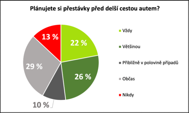 Situace, kdy se řidiči dostávají do nekomfortní situace spojené s únavou, jsou přitom poměrně časté. Hned 37 % českých řidičů v průzkumu společnosti MOL přiznává, že se vlivem únavy při řízení dostalo do nebezpečné situace. Přesto ji však řada řidičů stále podceňuje a na delších cestách zapomíná na plánování dostatečných zastávek. Jen necelá polovina motoristů (48 %) v průzkumu uvedla, že při plánování cesty předem přemýšlí o zastávkách a odpočinku. Zbývající respondenti přiznávají, že své přestávky plánují jen občas nebo zcela náhodně.